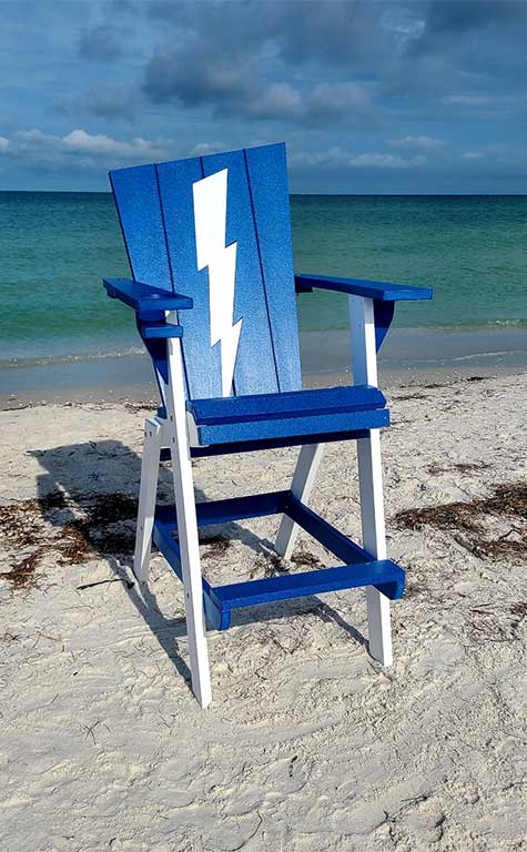 One of a kind, tall Adirondack chair. Sit up high and enjoy the view in full comfort. Comes with a curved back, seat and front of the chair, providing ultimate comfort for hours, no pillows needed!